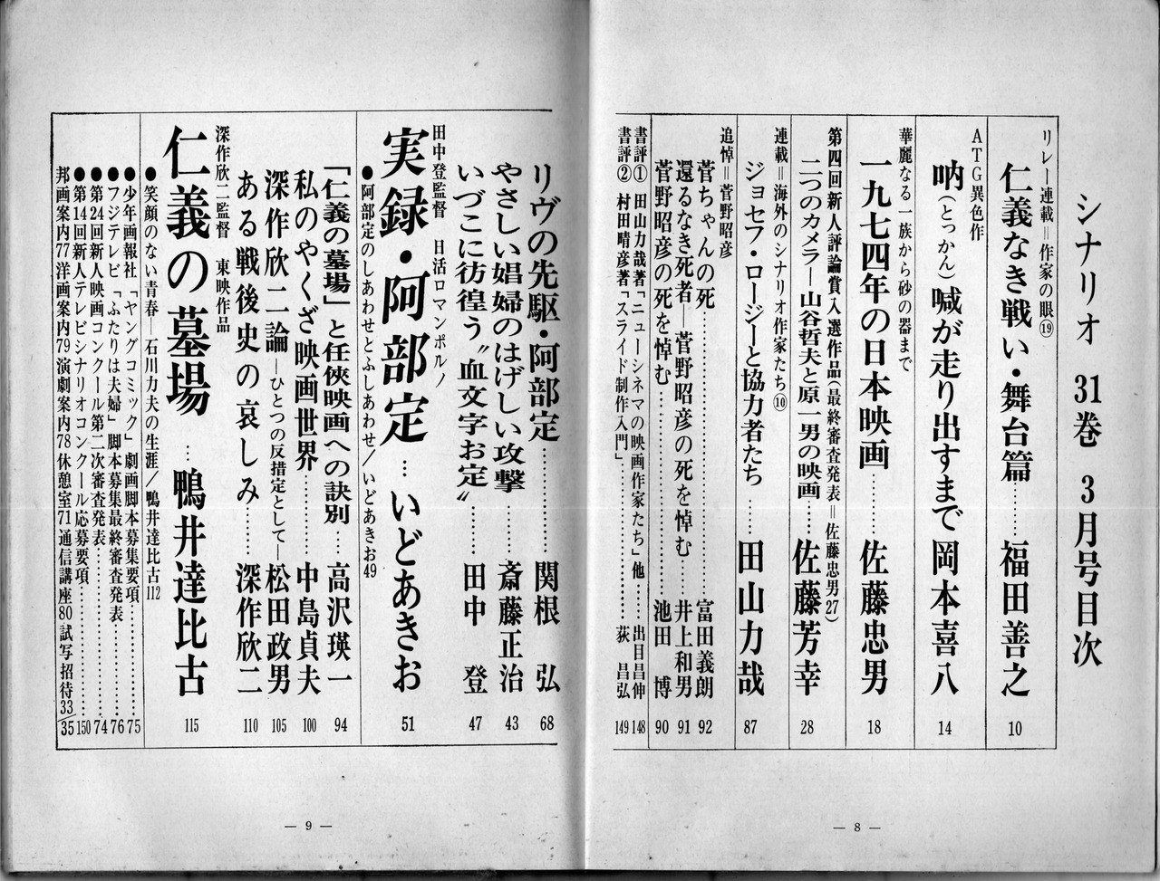 雑誌シナリオ1975年3月号(仁義の墓場、実録・阿部定)