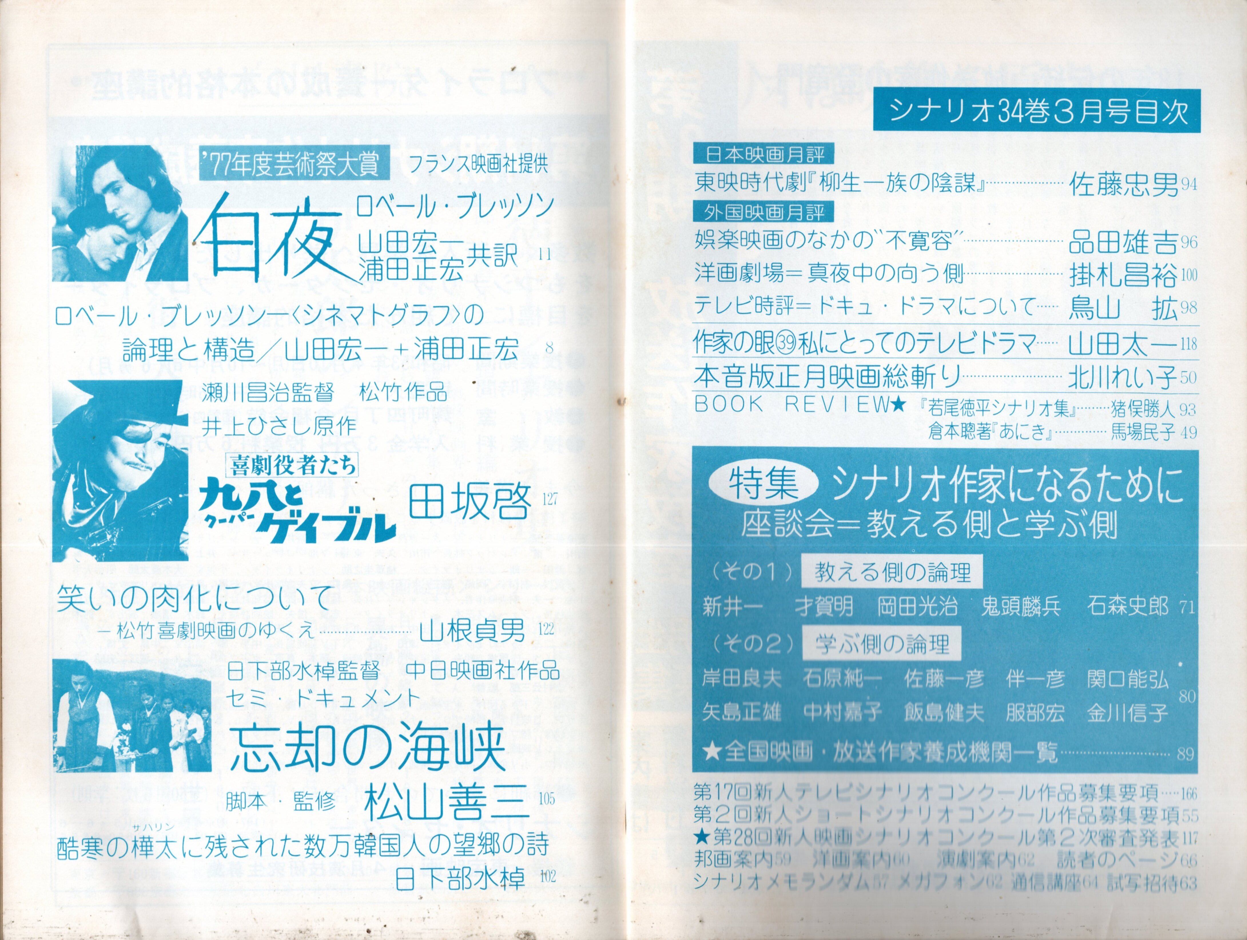 雑誌シナリオ1978年3月号(白夜、喜劇役者たち 九八とゲーブル、忘却の海峡)