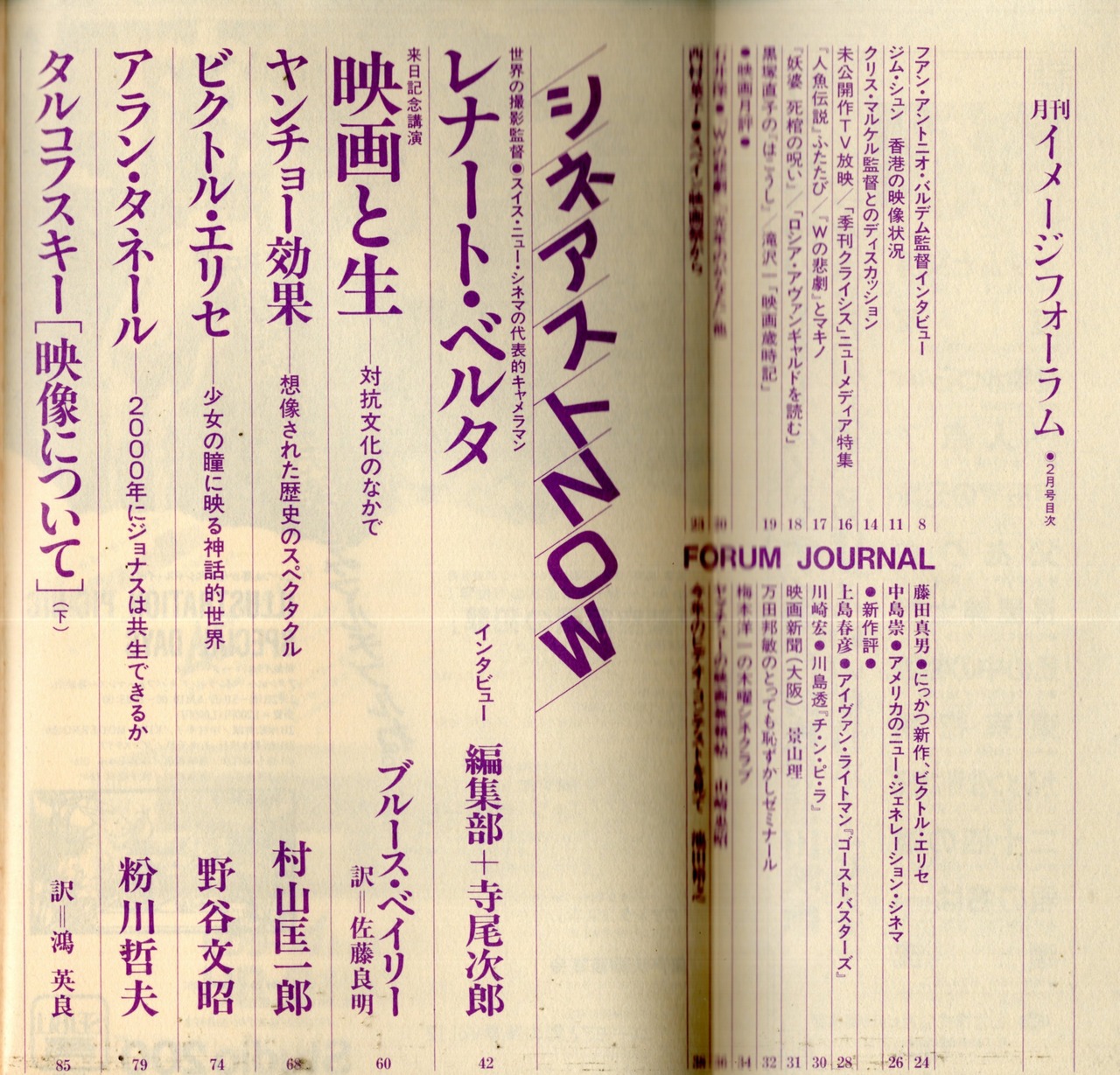 雑誌 イメージフォーラム1985年2月号